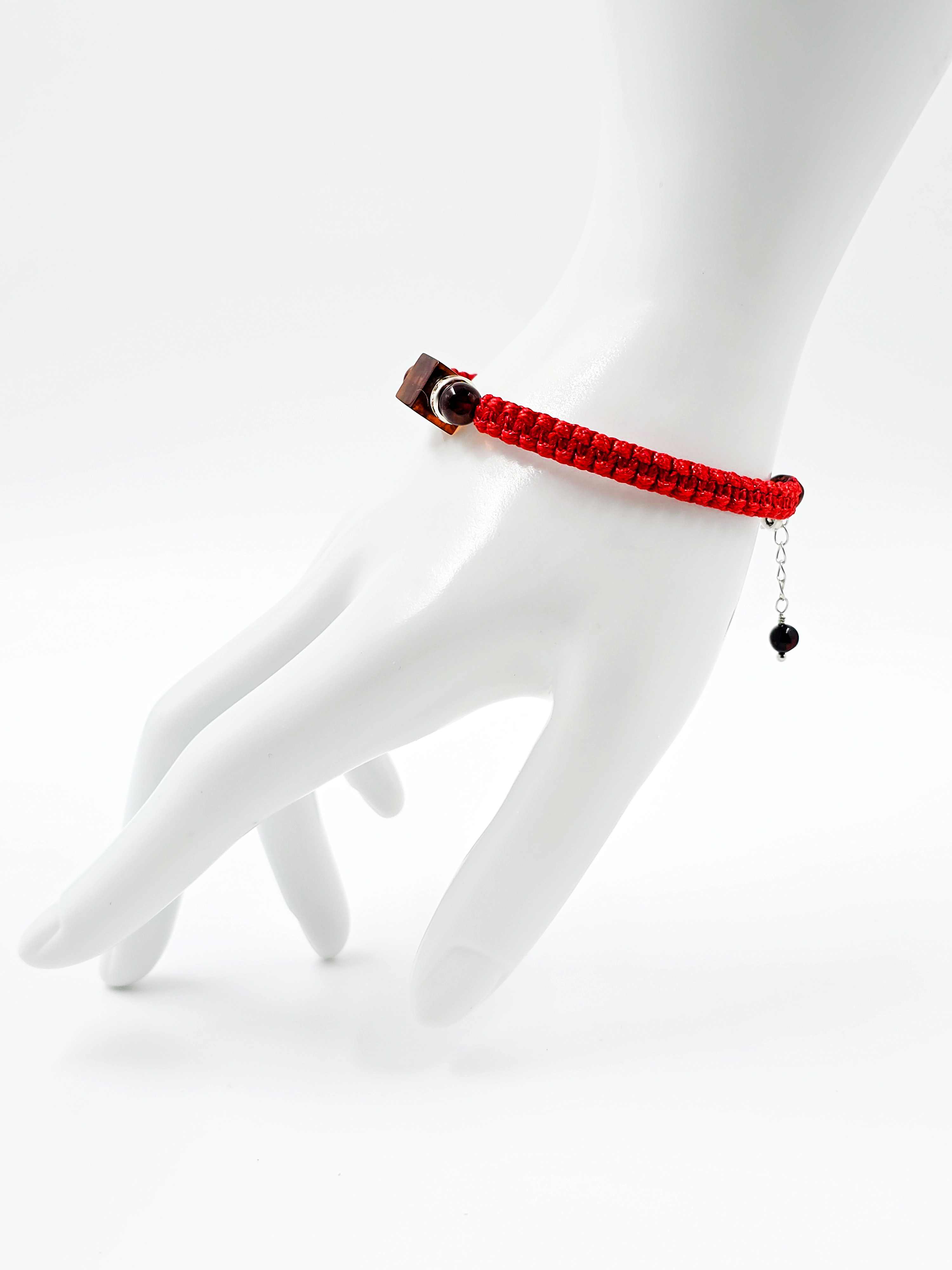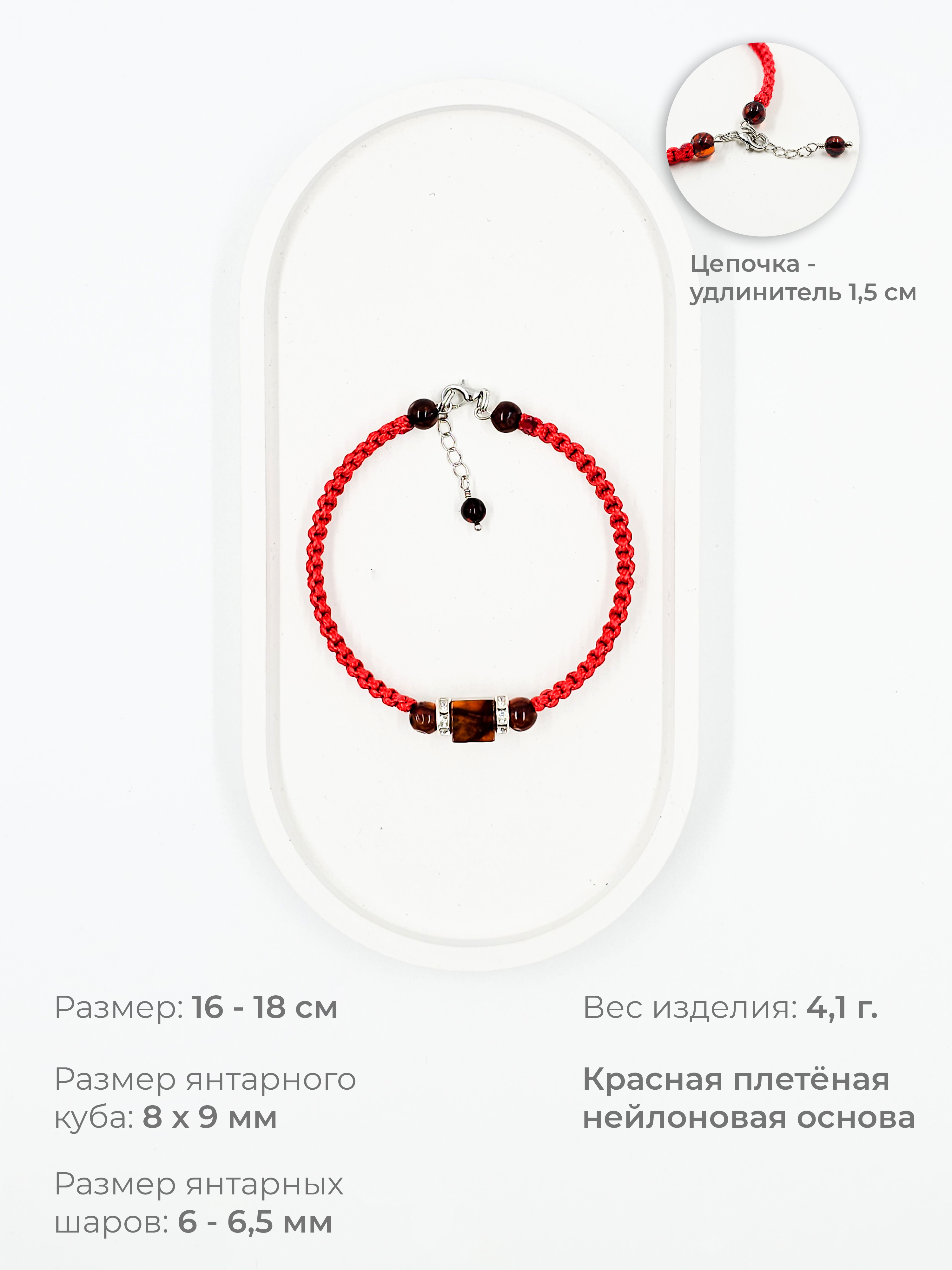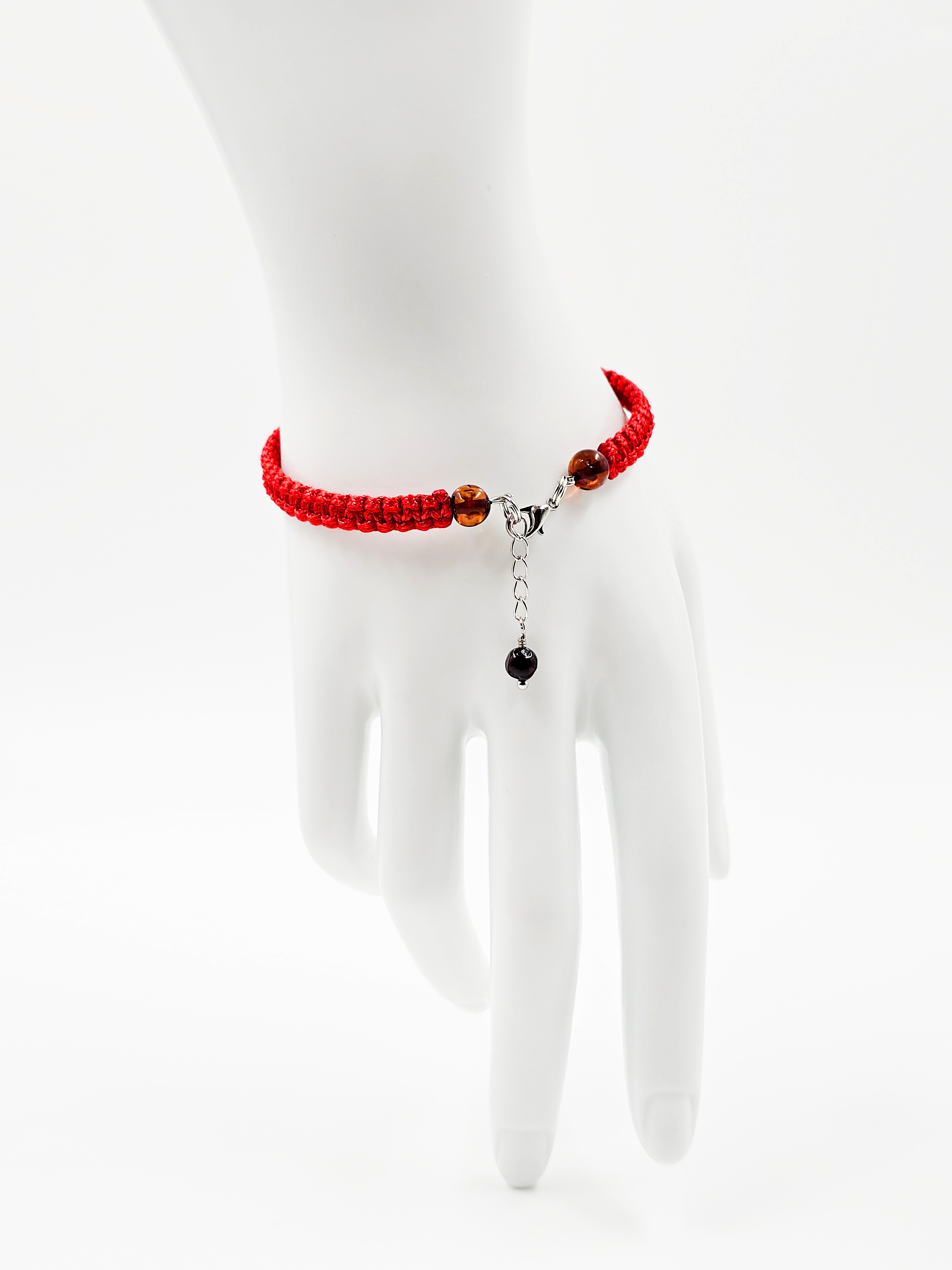 Красная нить, используемая в браслете, традиционно считается сильным оберегом, символизирующим защиту и привлекающим удачу. В сочетании с янтарём — камнем солнца, тепла и жизненной энергии — браслет становится не просто украшением, а талисманом, который подчеркивает индивидуальность и при этом несёт глубокий смысл.