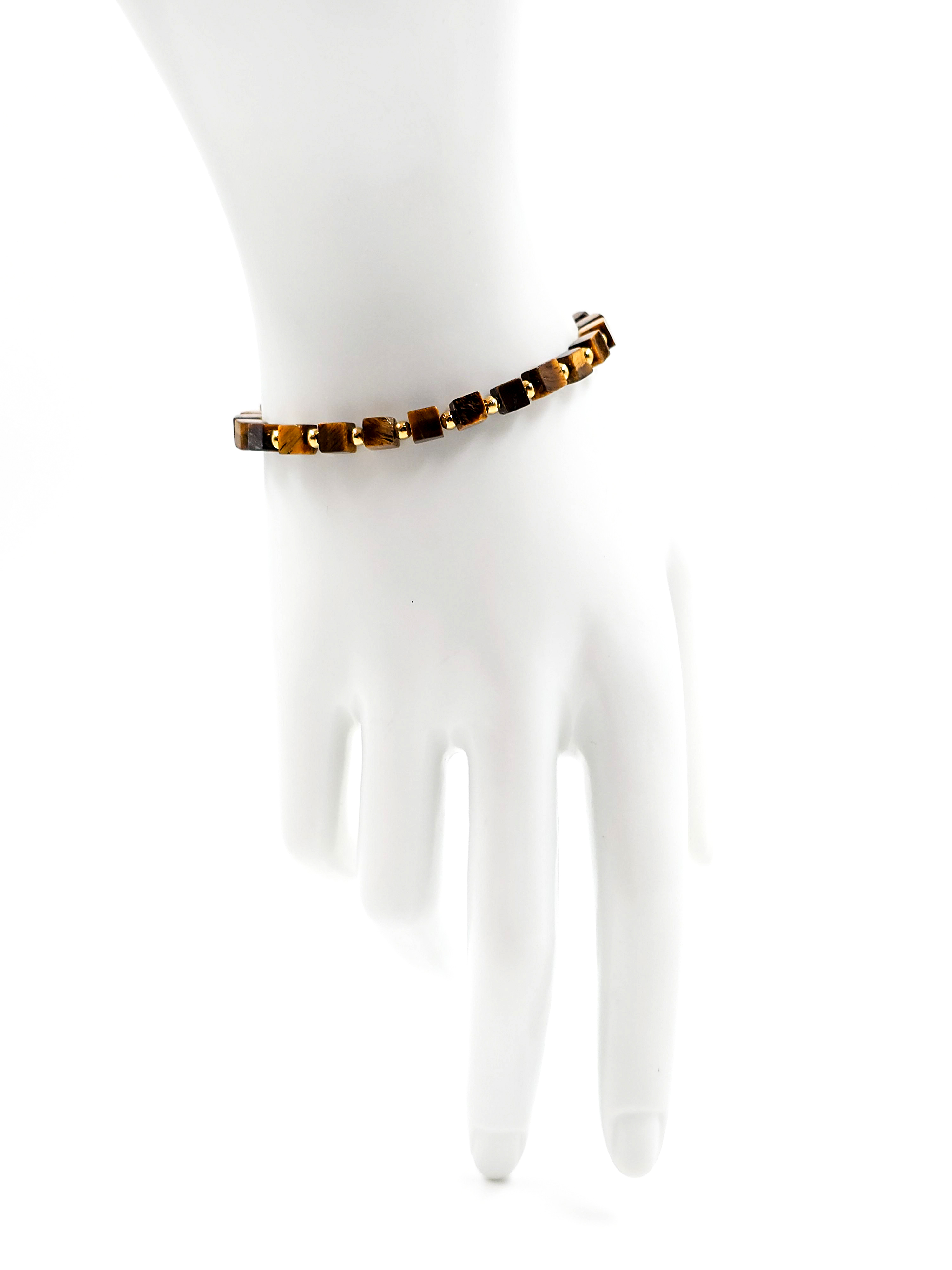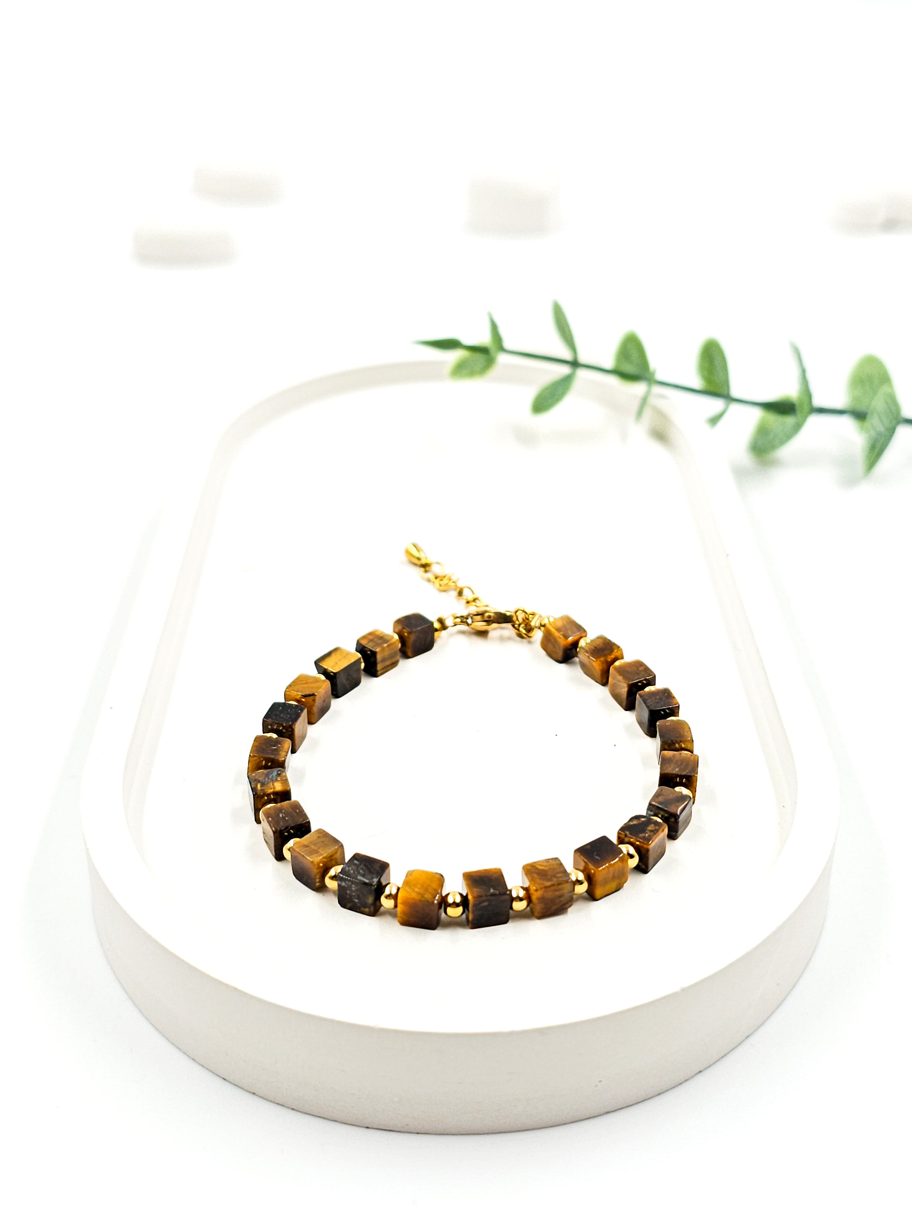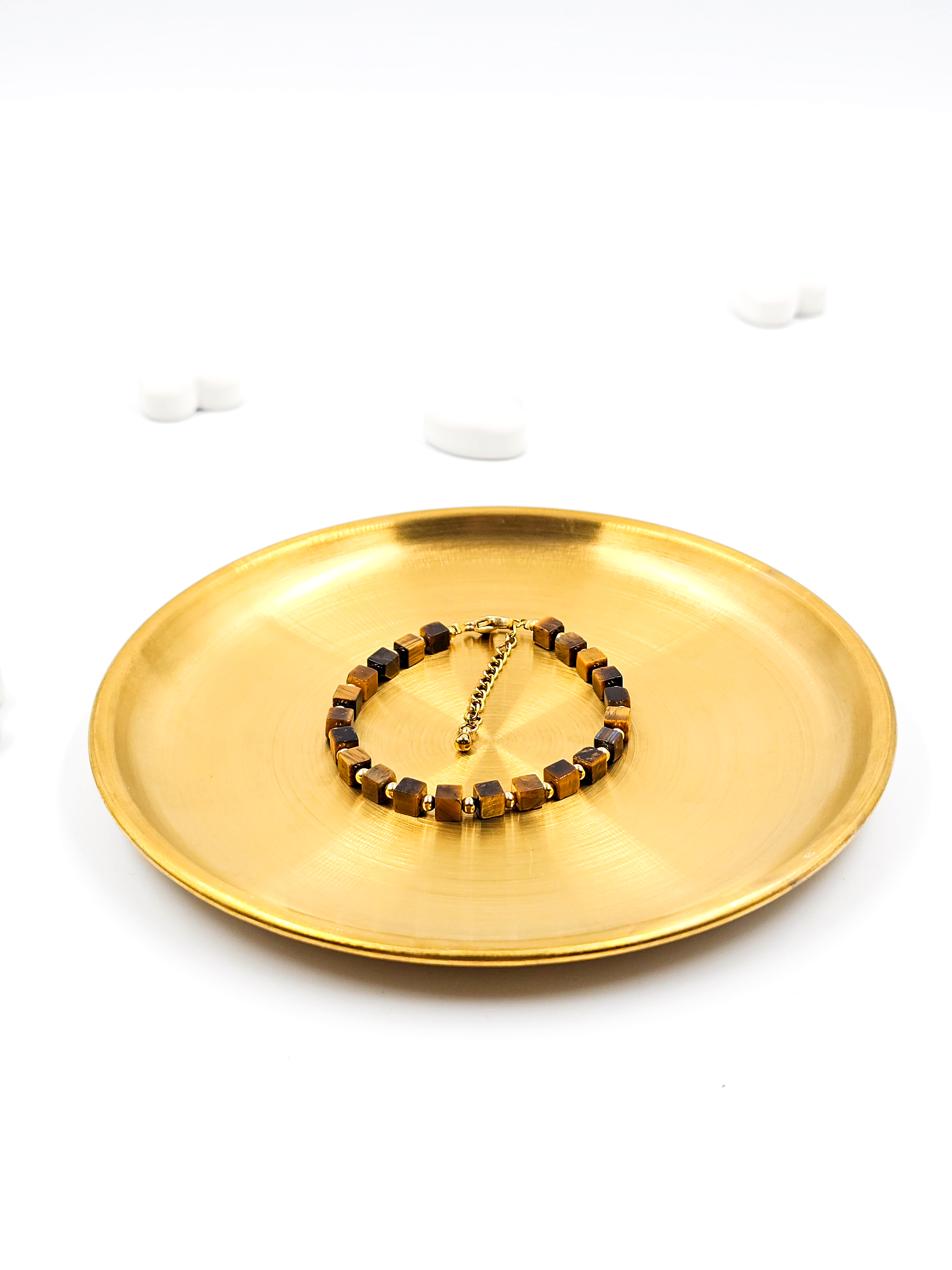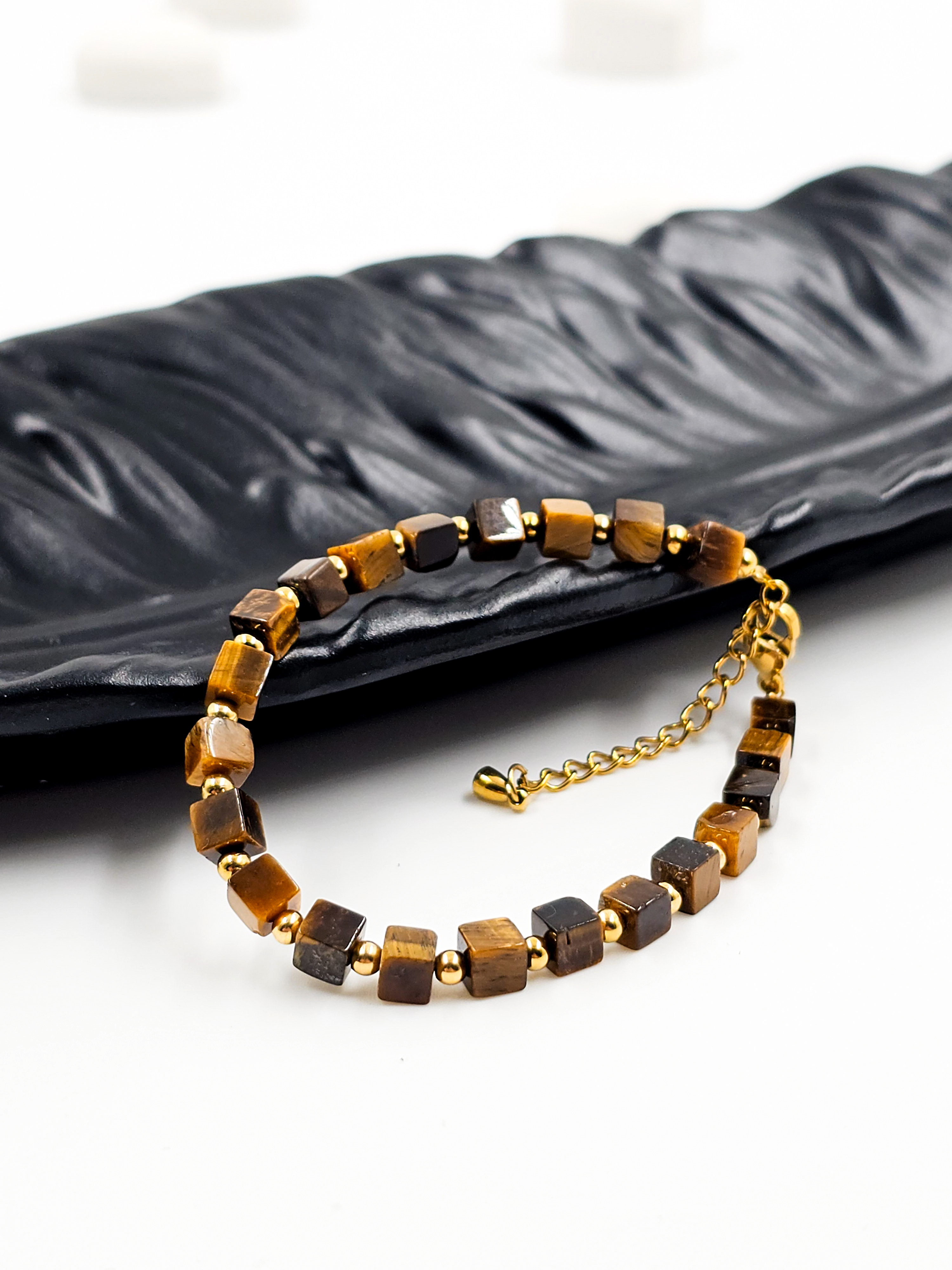 Женский браслет на руку из натурального тигрового глаза — это сочетание природной энергии камня, ручной работы и аккуратного современного дизайна. Украшение создаётся вручную мастерами, поэтому каждая деталь продумана до мелочей. Центральной особенностью браслета являются кубические бусины из тигрового глаза размером 4,5 мм. Они вытачиваются вручную из натурального камня, и именно поэтому могут иметь лёгкую асимметрию граней — это естественная особенность ручной огранки, которая делает каждое украшение уникальным. Тигровый глаз известен как камень силы, уверенности и внутренней устойчивости. Считается, что тигровый глаз поддерживает энергетику человека, усиливает уверенность в себе и помогает достигать поставленных целей. Благодаря характерному «кошачьему» переливу камень выглядит живым и выразительным, а каждая грань отражает природную глубину оттенков — от тёмных насыщенных тонов до светлых золотистых прожилок. Браслет собран на прочной ювелирной проволоке, которая сохраняет форму изделия и обеспечивает надёжность при ежедневной носке. Между камнями размещены латунные спейсеры с позолотой диаметром 3 мм, создающие лёгкие акценты и подчёркивающие природную текстуру тигрового глаза. Для удобной посадки предусмотрена цепочка-удлинитель 3,5 см, благодаря которой браслет легко регулируется и подходит на запястье размером от 15 до 18 см. Натуральный тигровый глаз — природный материал, поэтому оттенок камней может немного отличаться от фотографий. Возможны небольшие включения, микротрещины или природные особенности структуры — именно они подтверждают подлинность камня и делают каждое изделие неповторимым. Соблюдайте рекомендации по эксплуатации и уходу, избегайте длительного контакта украшения с водой и химическими веществами — и браслет из натурального камня тигровый глаз будет радовать своим блеском и энергией долгие годы.
