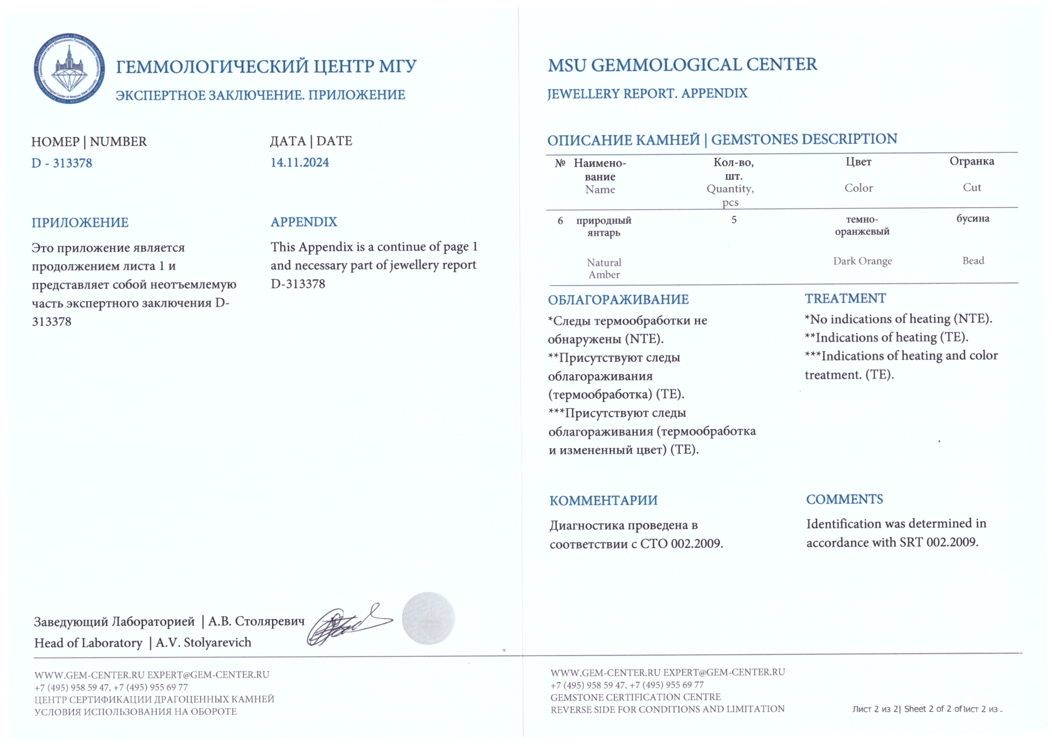 Экспертное заключение геммологического центра МГУ: