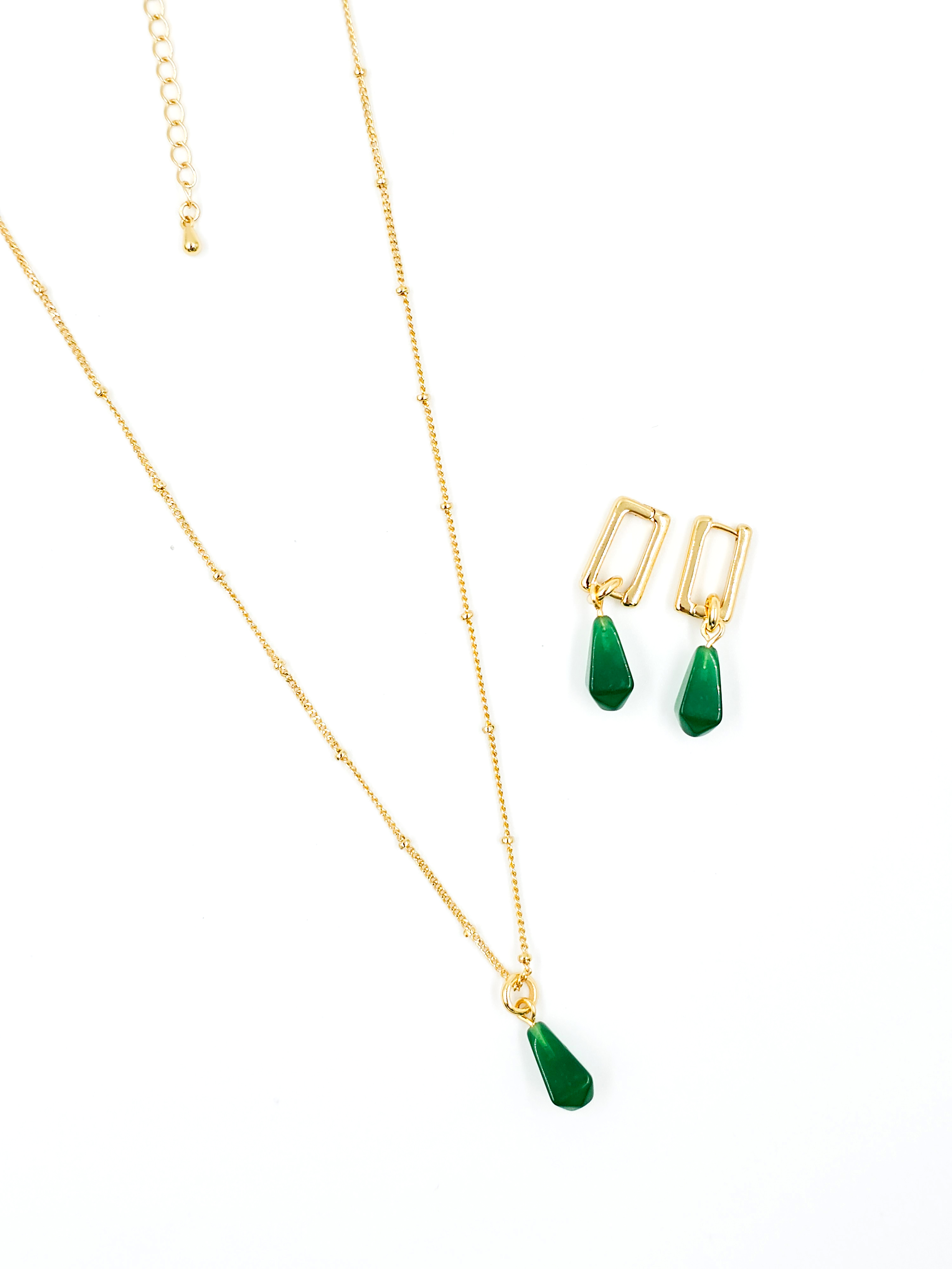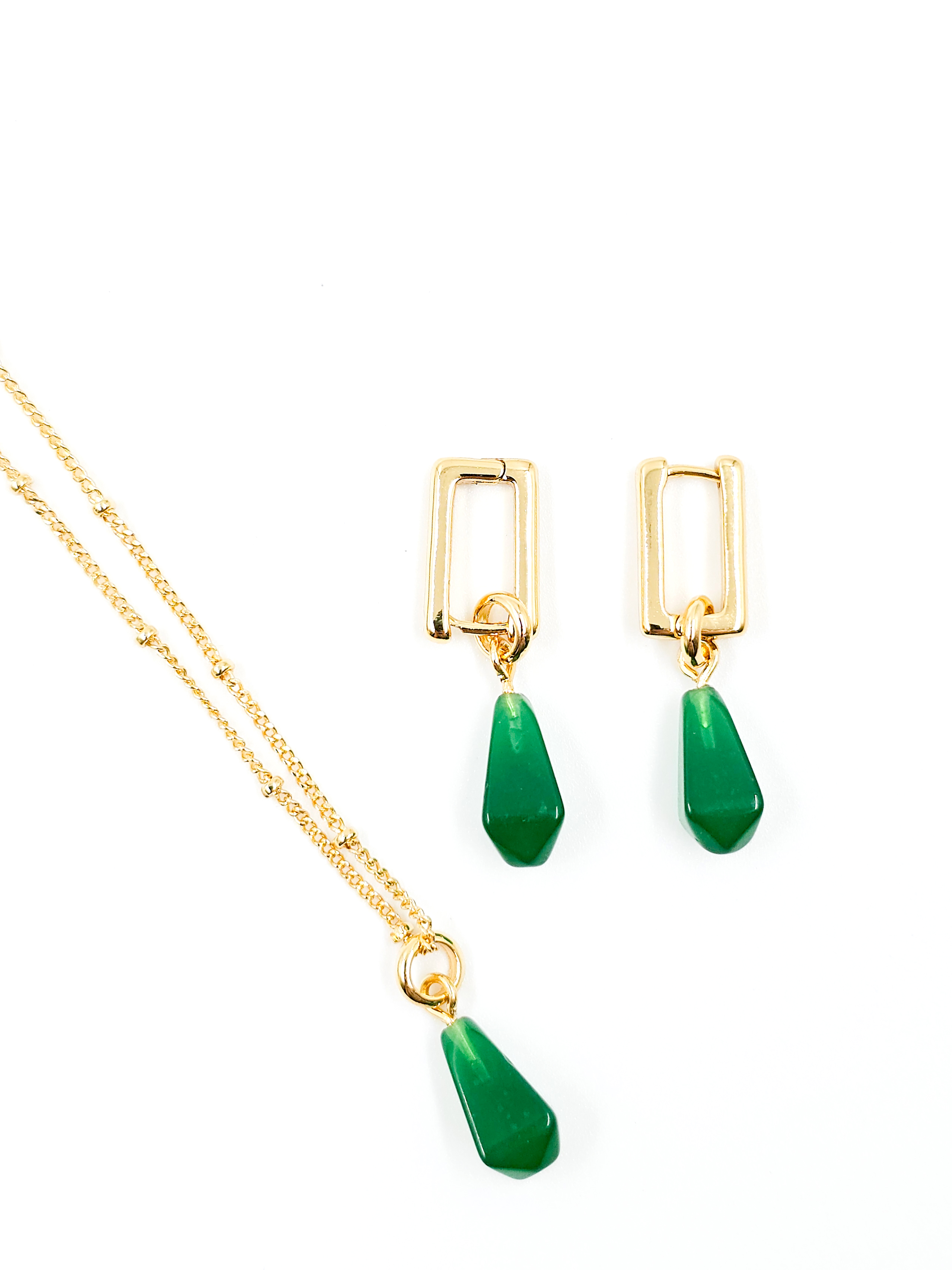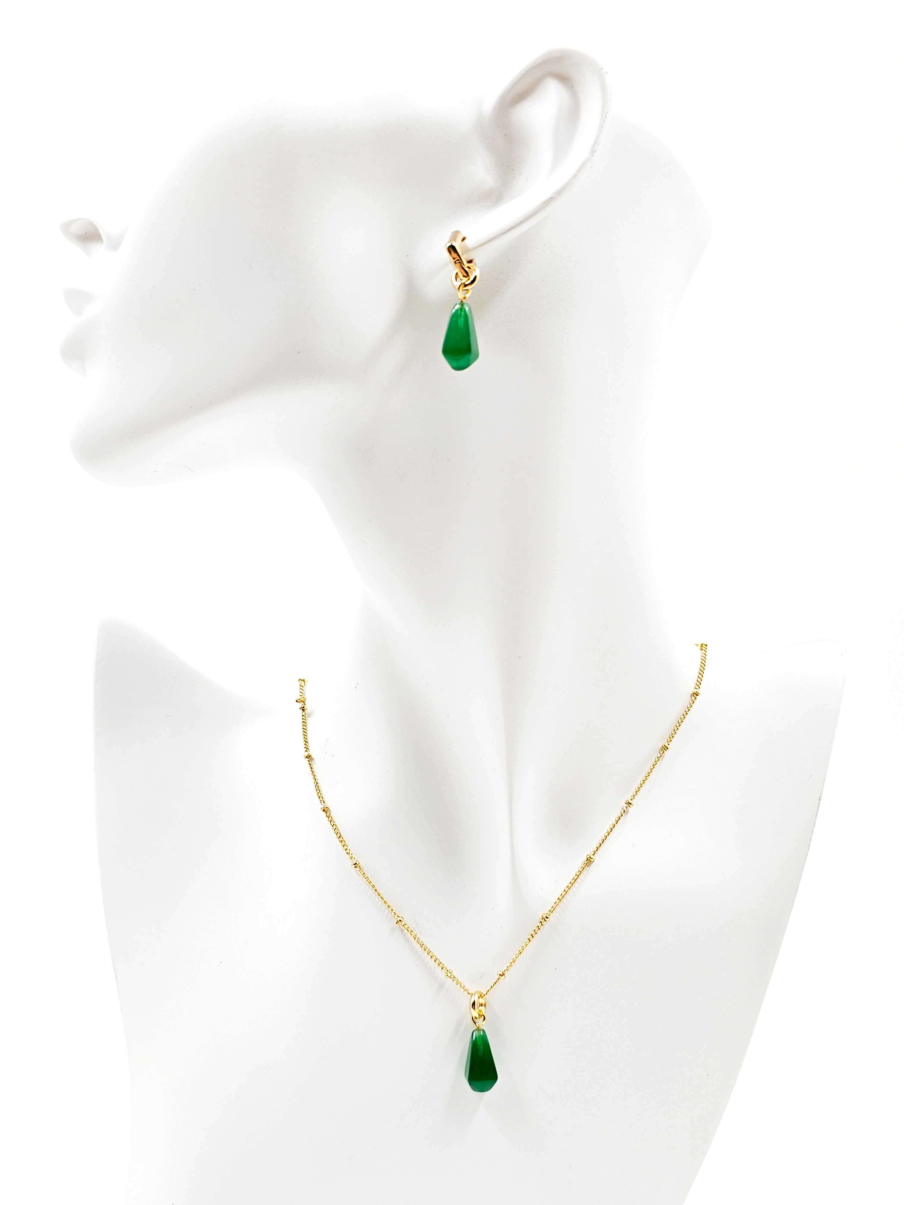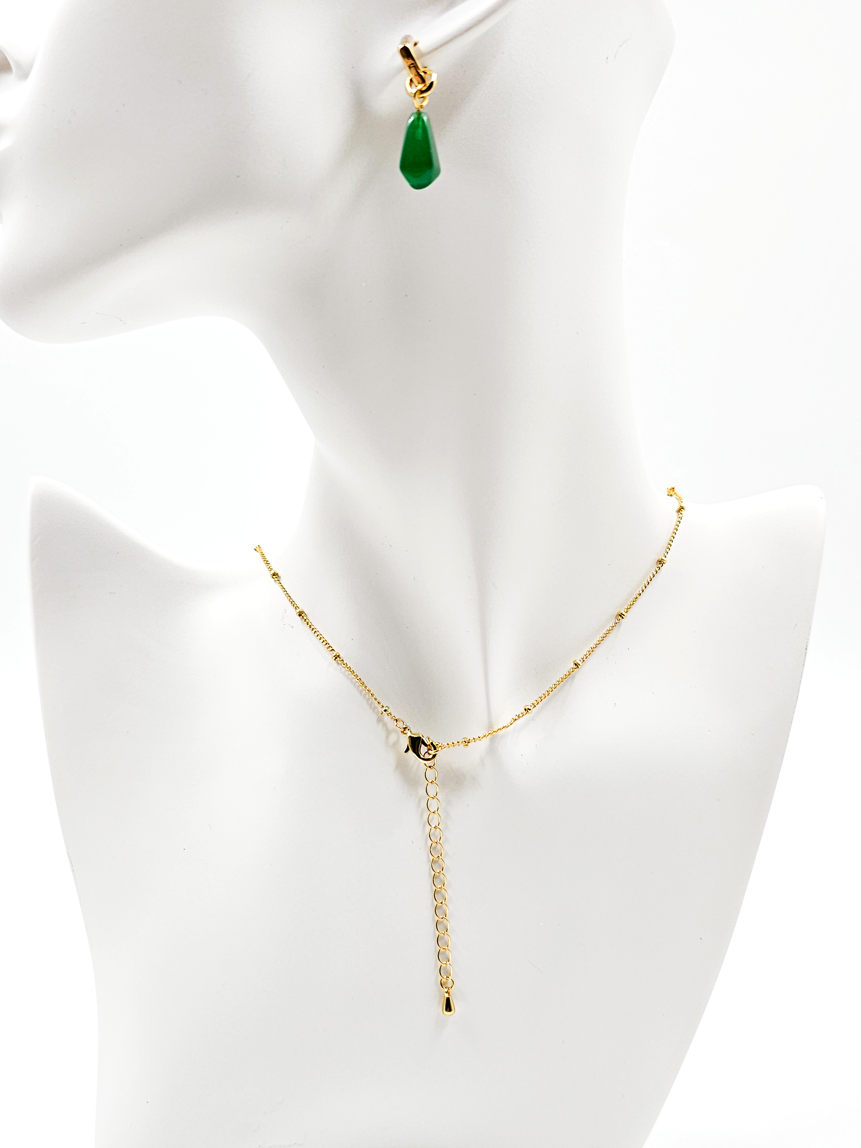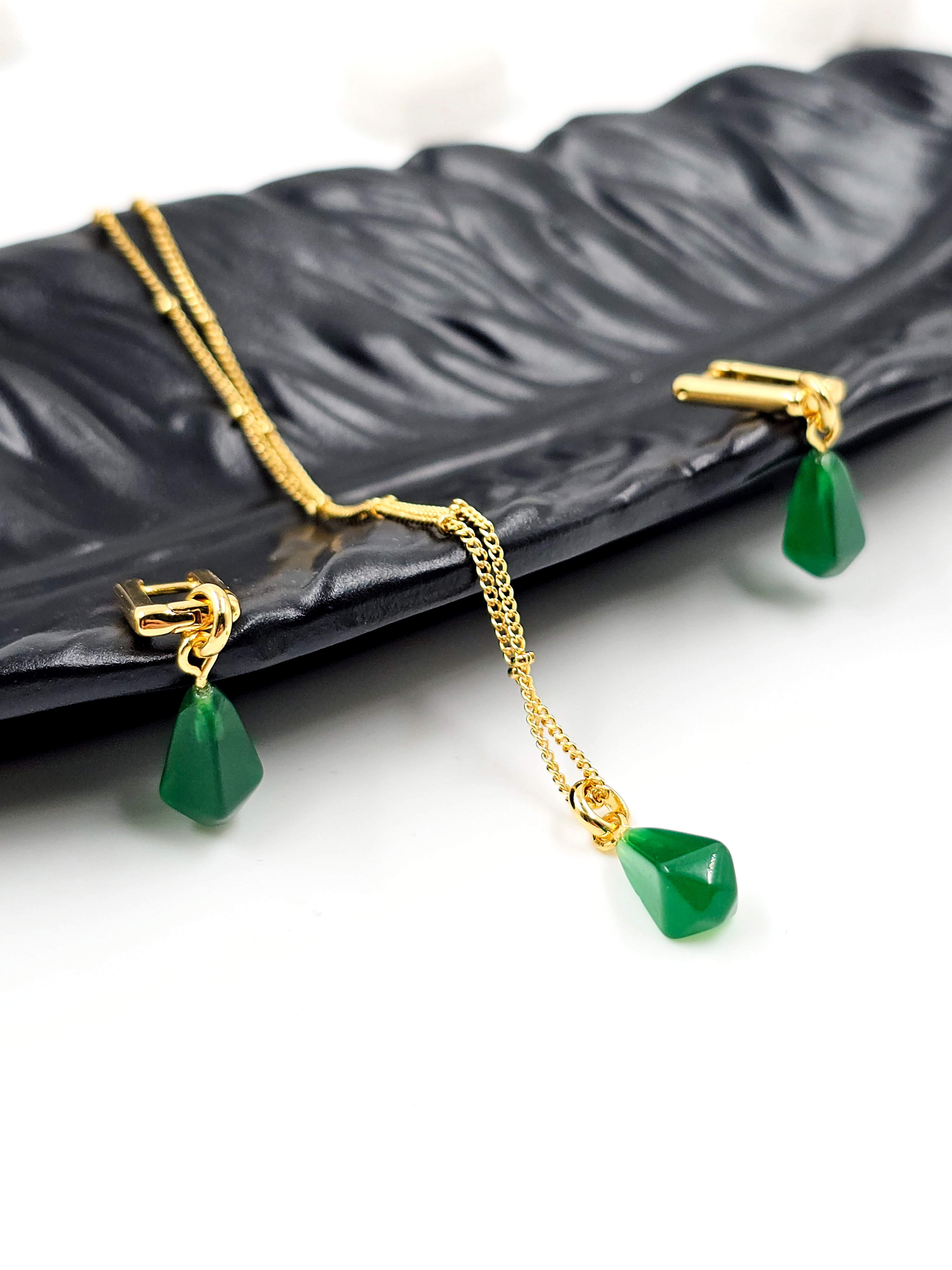 Фурнитура выполнена из прочной меди и покрыта позолотой 18k, которая устойчива к потемнению и придаёт комплекту благородный блеск. Такое сочетание делает украшение универсальным: оно прекрасно вписывается как в деловой гардероб, подчёркивая элегантность, так и в повседневный стиль, добавляя утончённость и индивидуальность.