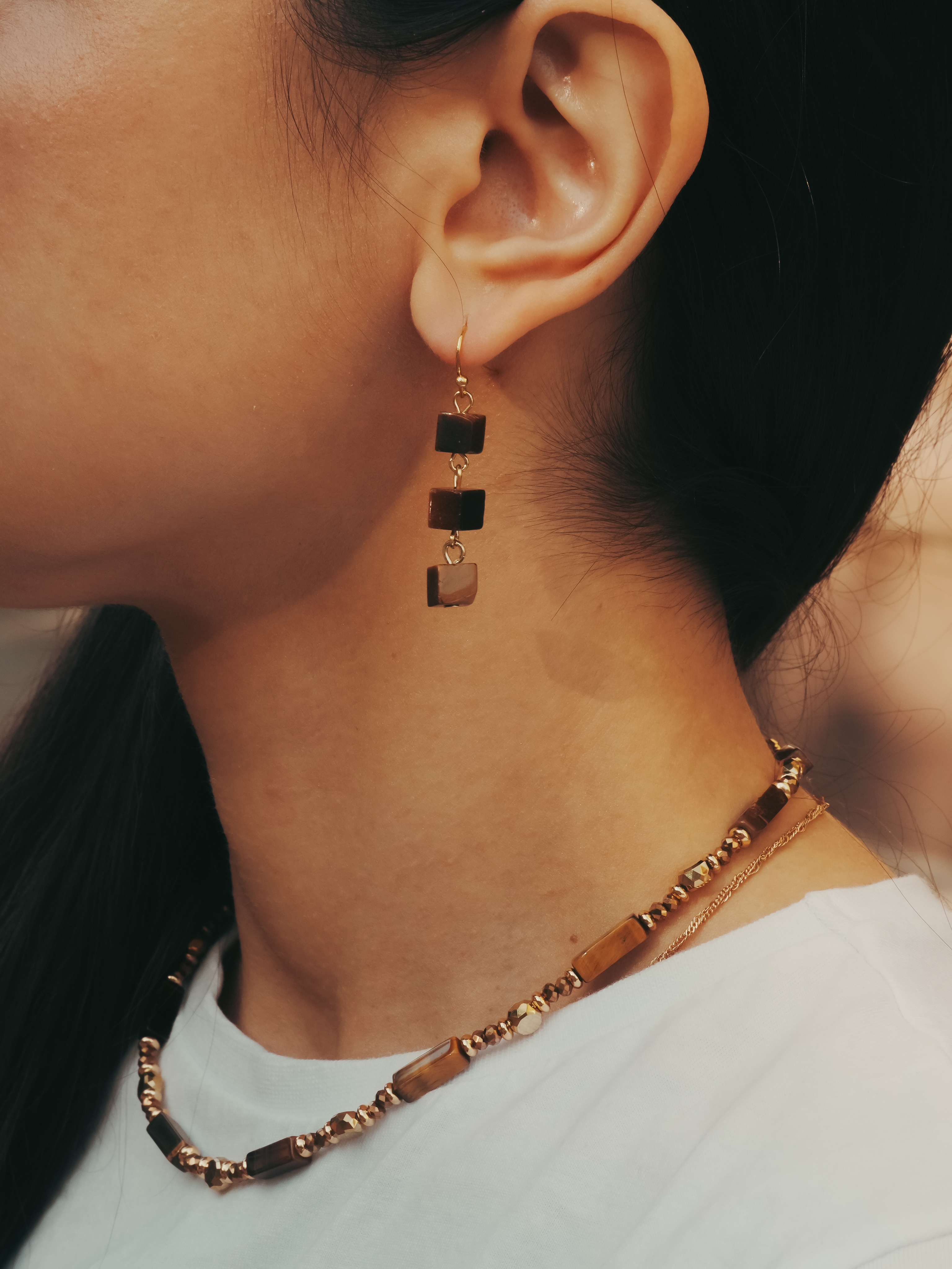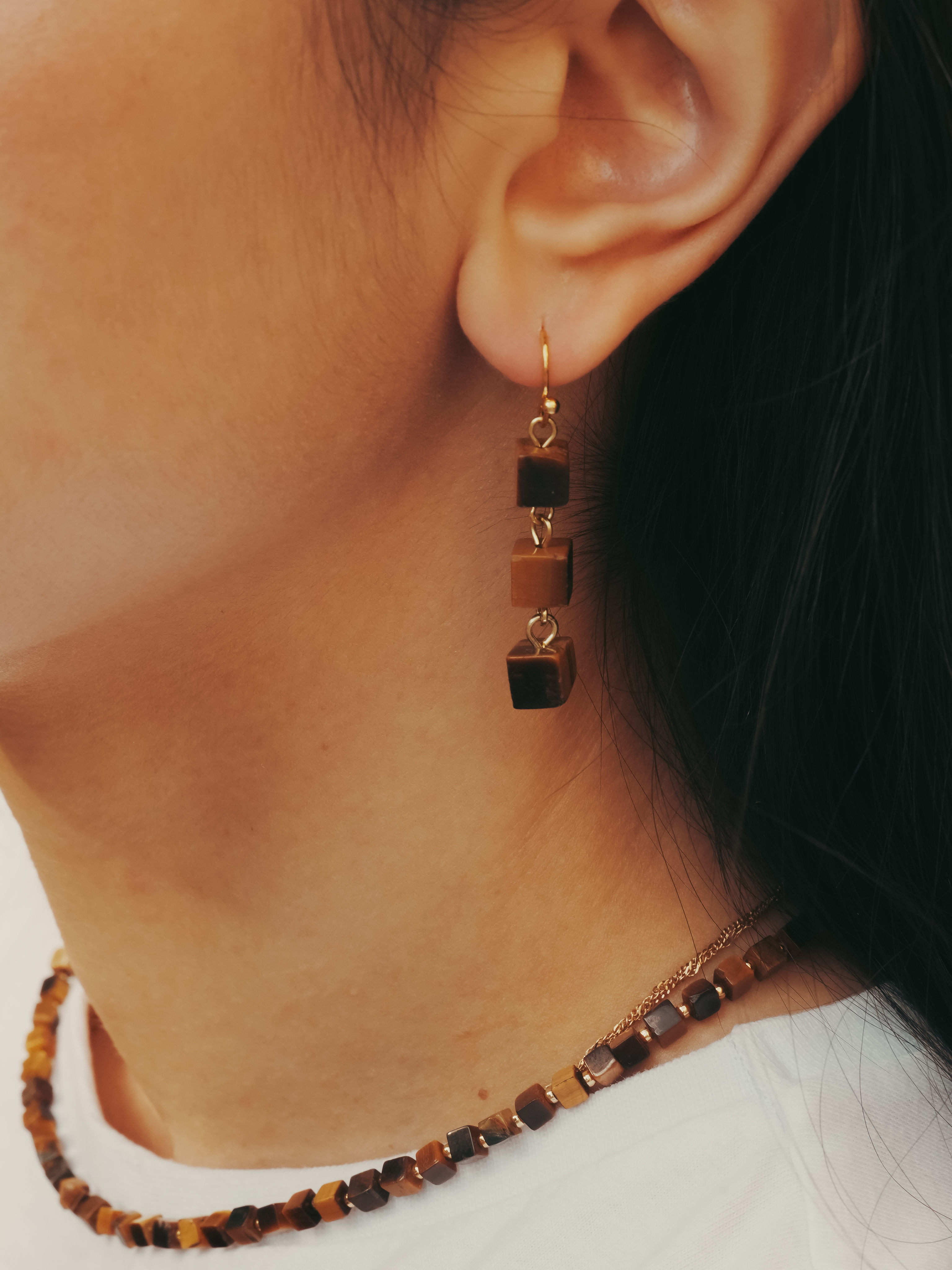 Женские серьги из натурального камня тигровый глаз — элегантное украшение, которое сочетает в себе красоту природных минералов и современный дизайн. Серьги выполнены в виде подвесок с камнями-кубами, каждый из которых обработан вручную. Именно ручная огранка делает каждую пару серёг уникальной: кубы могут иметь лёгкие отличия в форме или оттенке, ведь это естественные особенности натурального камня. Эти небольшие несовершенства не являются дефектом — наоборот, они подчеркивают подлинность минерала и превращают каждое изделие в неповторимое.