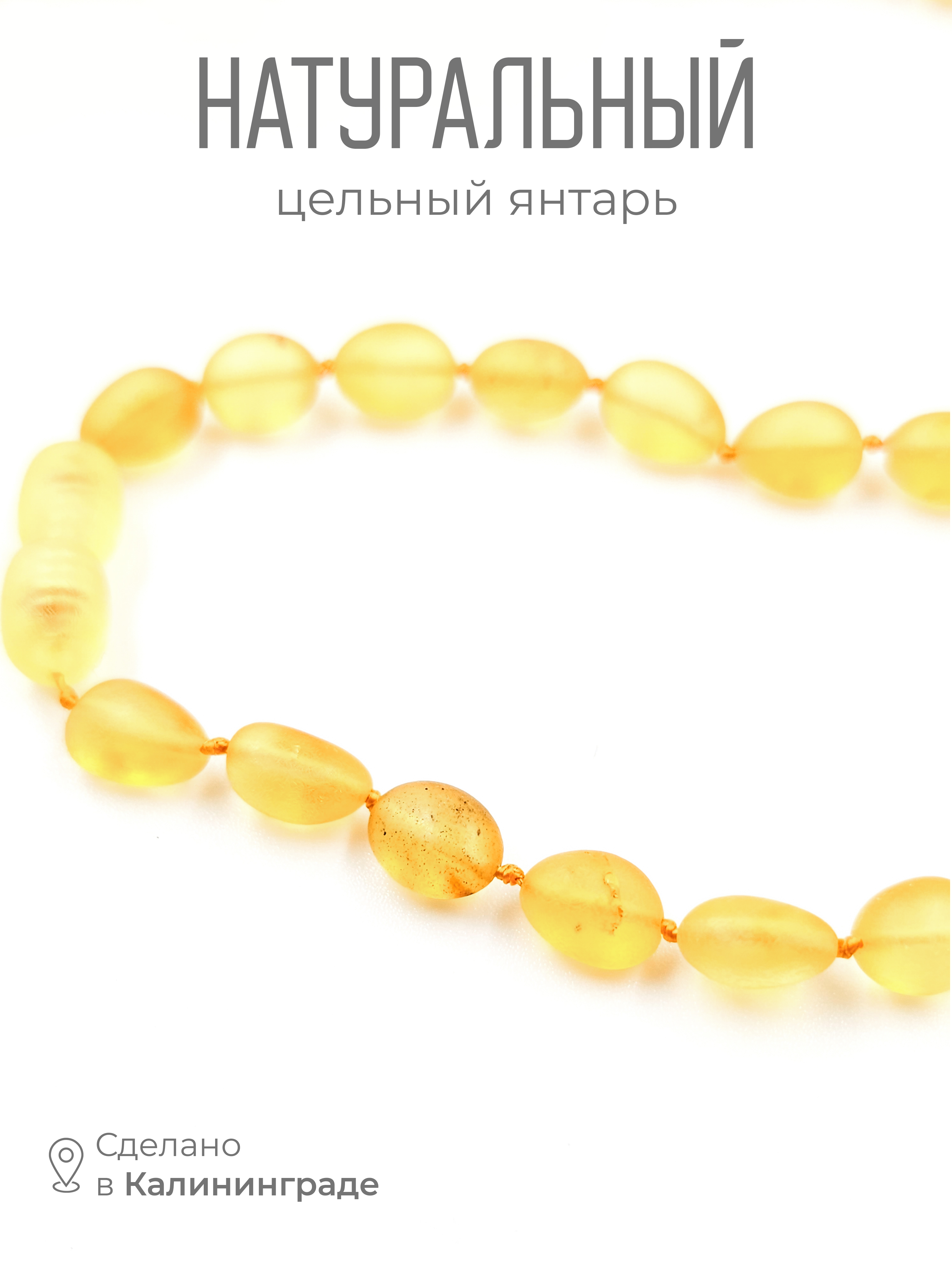 Каждое изделие уникально, ведь янтарь — природный материал. Возможны небольшие различия в оттенках, формах и размерах камней, а также естественные включения, которые подтверждают подлинность происхождения минерала. Благодаря этому каждые бусы имеют свой неповторимый характер и становятся личным, живым амулетом для малыша.